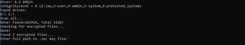 4. Once the Tool finds all encrypted files, it may require a path to be outlined for each .sek file. If you are scanning the entire network but have multiple .sek files, you’ll need to run the tool once for every distinct .sek file. This process may be time consuming depending on the number files.